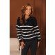 Super leuk truitje met strepen en korte rits aan de voorzijde. Lekker warm & comfy! One size en goed te dragen tot maat L, XL